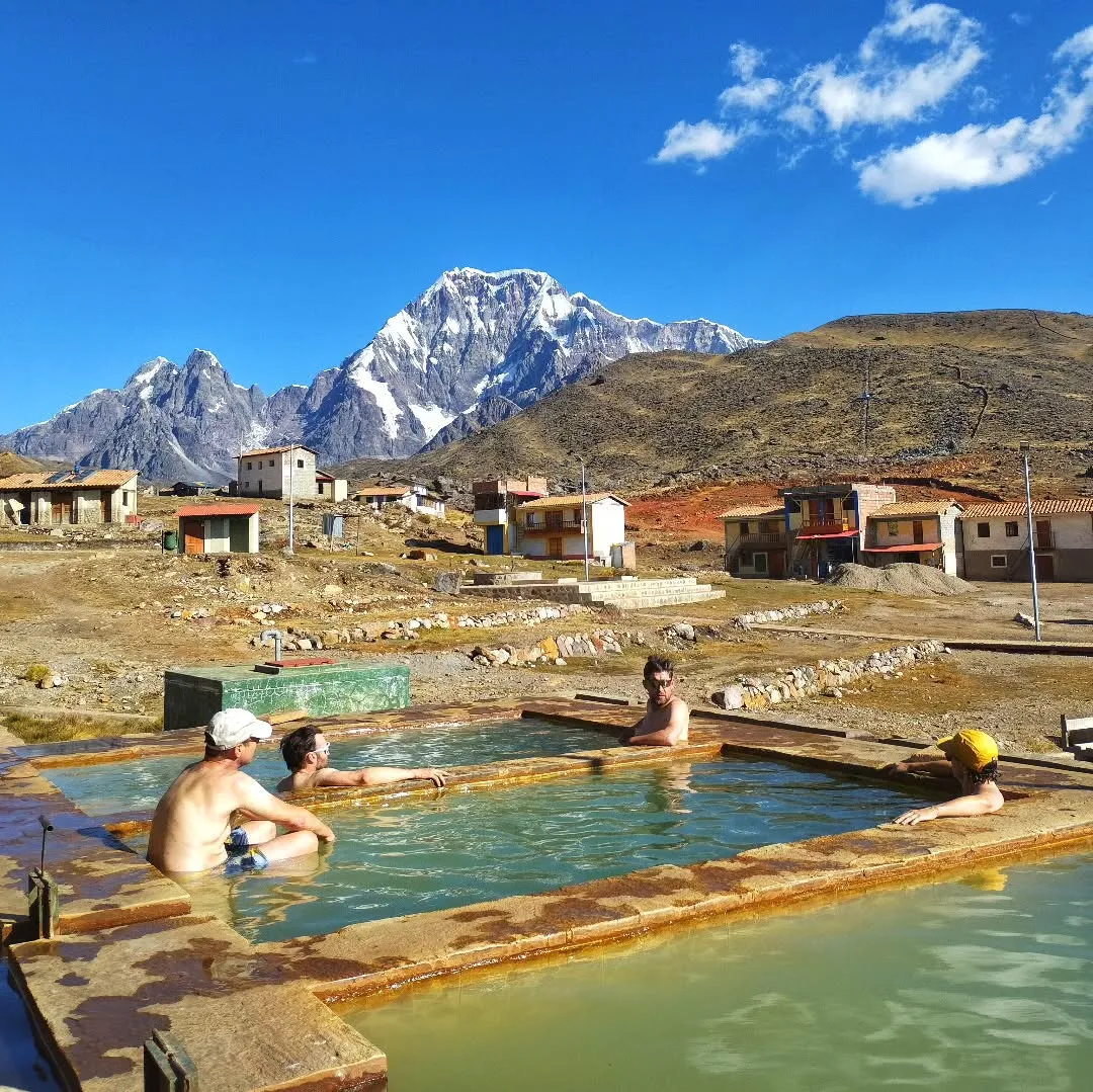 - Tras completar la caminata, retornaremos a Pacchanta, donde nos espera un almuerzo nutritivo con ingredientes locales. Luego, disfrutaremos de un merecido descanso en las Aguas Termales, donde podremos relajarnos durante 45 minutos mientras admiramos el majestuoso paisaje de los Andes.